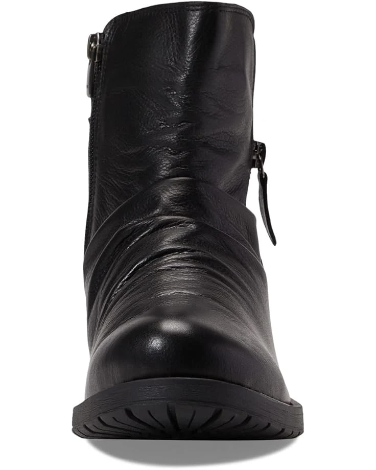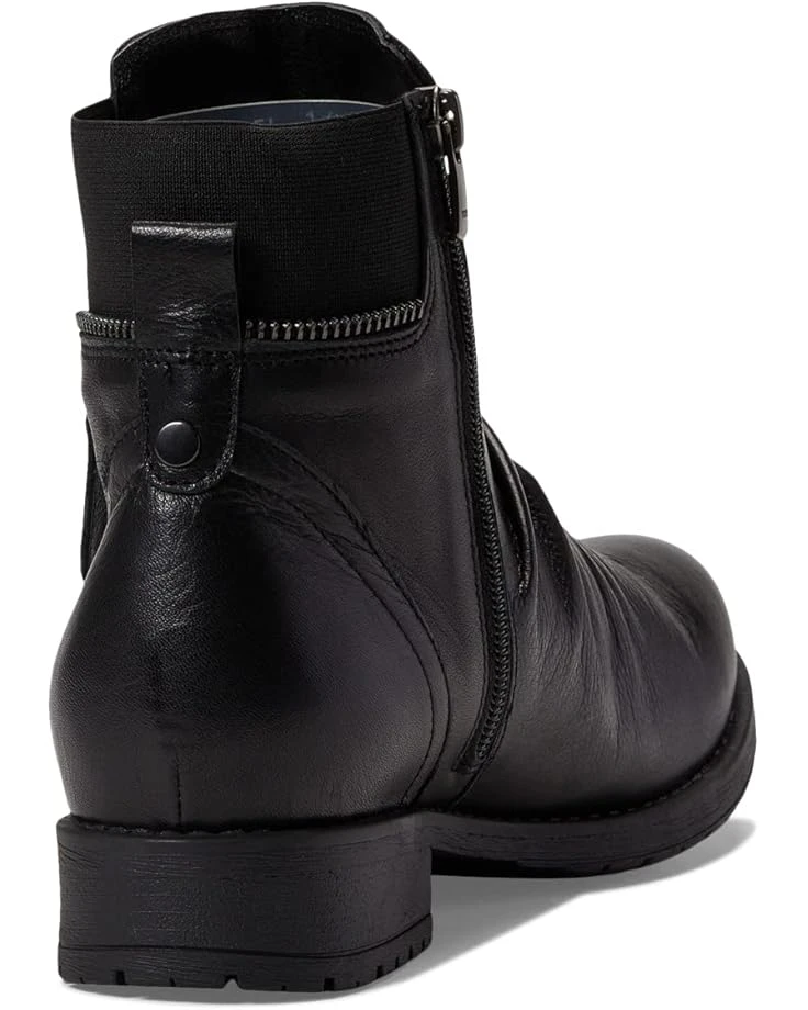 This boot was a winner! I was looking for a black Chelsea-type boot with a zipper for easy on and off. This boot has minimal details, could have done without the outside zipper detail but can’t be too picky when you have foot issues and looking for style and comfort! It has a roomy upturned toe box which I found comfortable and the elastic back top panel eliminates any digging in of the top of the boot. Soft leather and good useful treads along the bottom for Urban walks. My foot runs a but narrow especially in the heel but this boot fit well with medium weight high quality socks…the kind that cling to your foot and don’t slip under the heel! I ended up using a Dr Scholl insert insole to fill in some space and make more comfortable as my orthotics are not going to fit. I can be any size from a 9.5-10.5 and the 41 (9.5-10) was good. I tried the Franco Sarto Marcus and Sofft Brookdale b4 finding this one….Thank you Zappos!