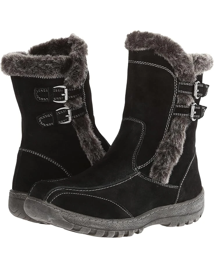 - Rich waterproof suede upper features a faux fur trim and collar for added appeal and warmth.