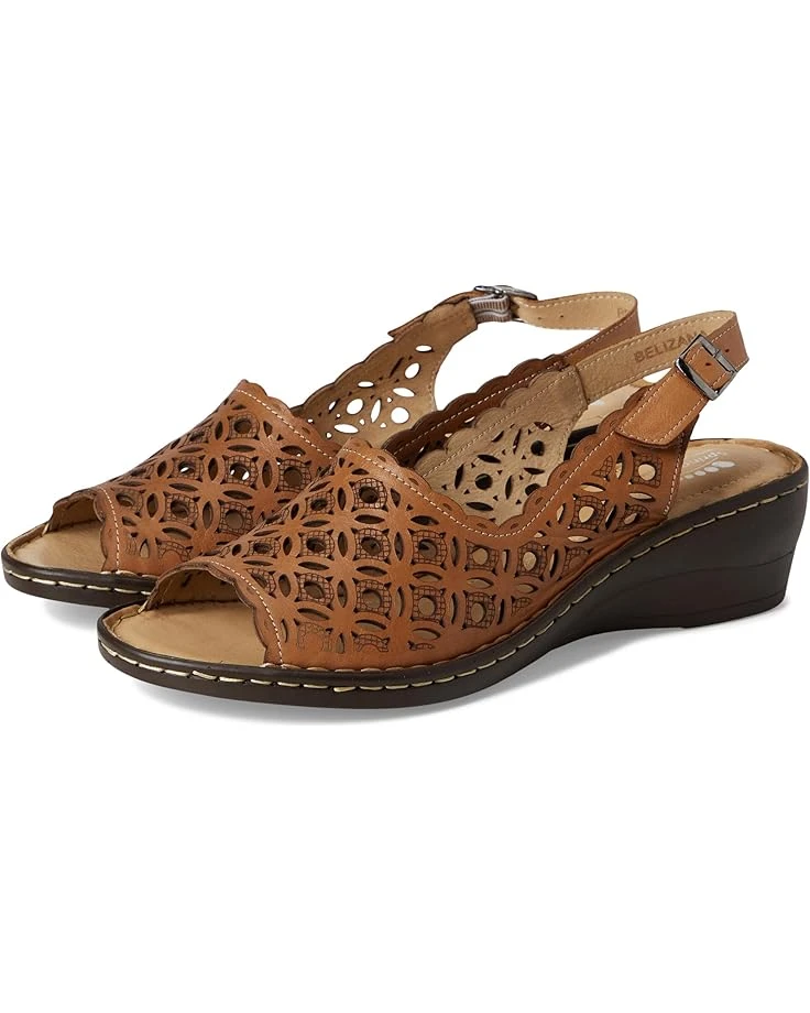 - Head out for a fun and casual outing wearing the Spring Step® Belizana. Crafted from leather upper, lining, and insole, this pair of sandals features open round toe, tonal stitching, adjustable buckle strap, wedge heel, and brand detailing on the footbed.