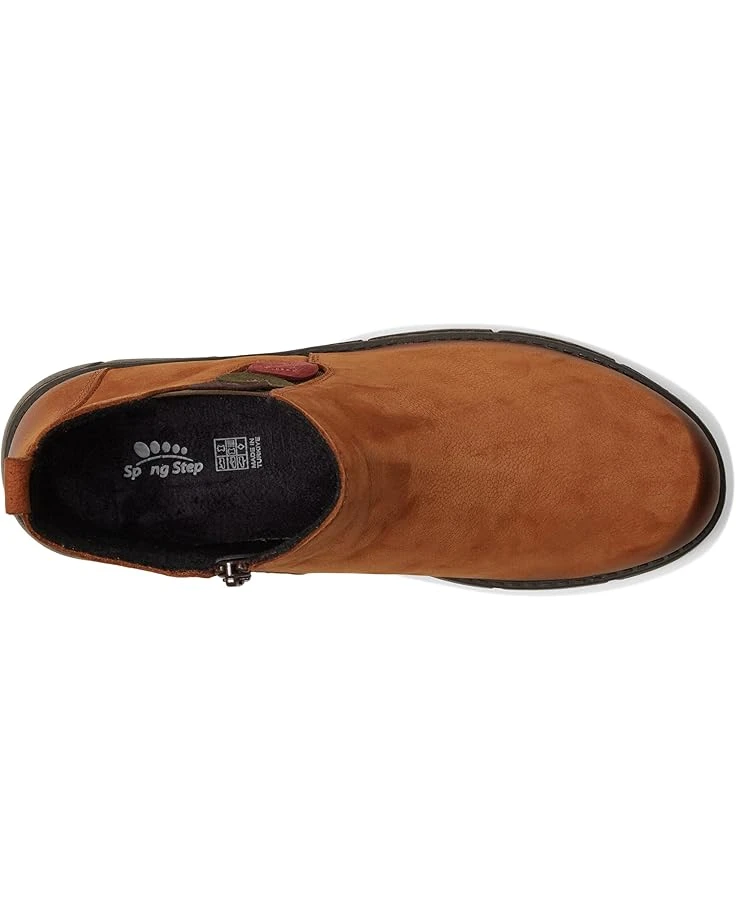 - Experience the ultimate in style and comfort with the ultra-comfortable bootie, seamlessly blending fashion and coziness for everyday wear. Accented with circular leather pieces that cover the elasticized gore, this Spring Step® Katana bootie provides ease with every step. Crafted from premium nubuck leather enhanced with a rich burnished finish that acquires a natural patina over time. Featuring a convenient inside zipper, slipping into these booties is easy, ensuring hassle-free and quick wear. The cushioned insole with arch support can be removed, making it easy to customize your comfort level or replace it with your own orthotics. The rugged, rubber sole provides excellent traction and support so you can walk with confidence.