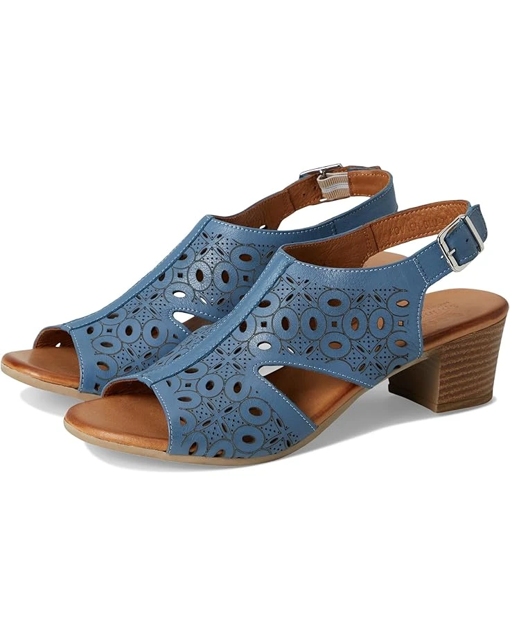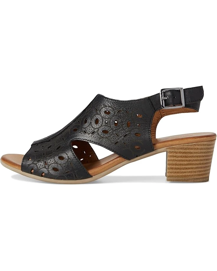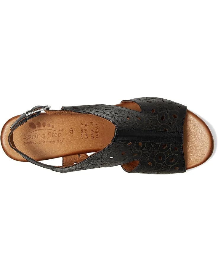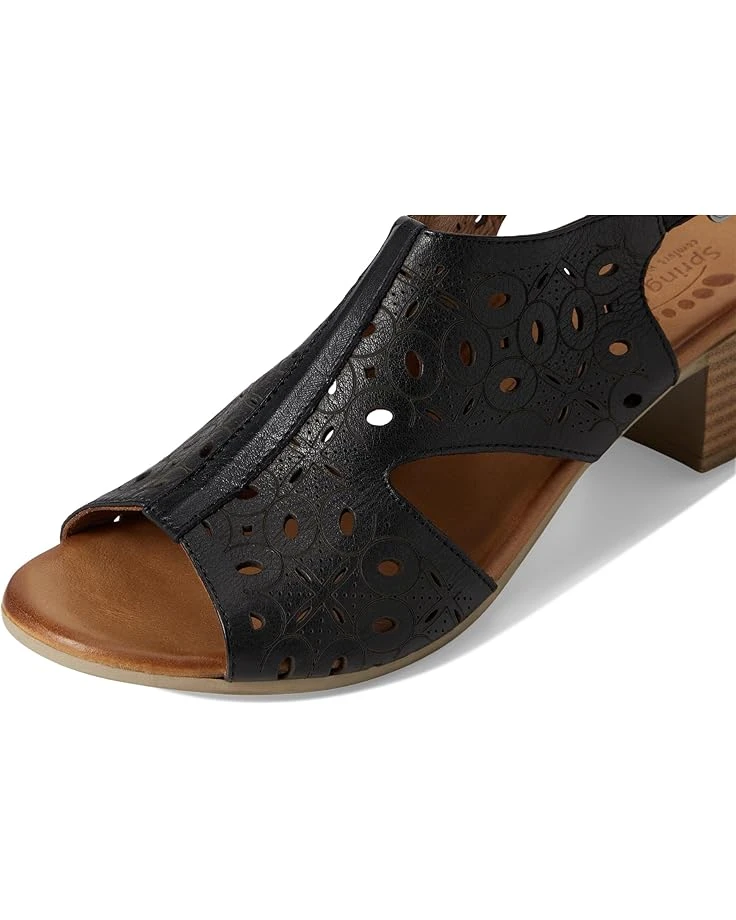 - Supportive, durable, and stylish, the Spring Step® Kovach is an epitome of style. Crafted from leather upper, lining, and insole, this pair of sandals features open round toe, functional stretch buckle that provides easy on and off accessibility, faux stacked design adds visual interest and texture making these sandals a classic and timeless style, block heel, and pretty perforation design.