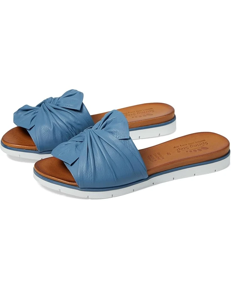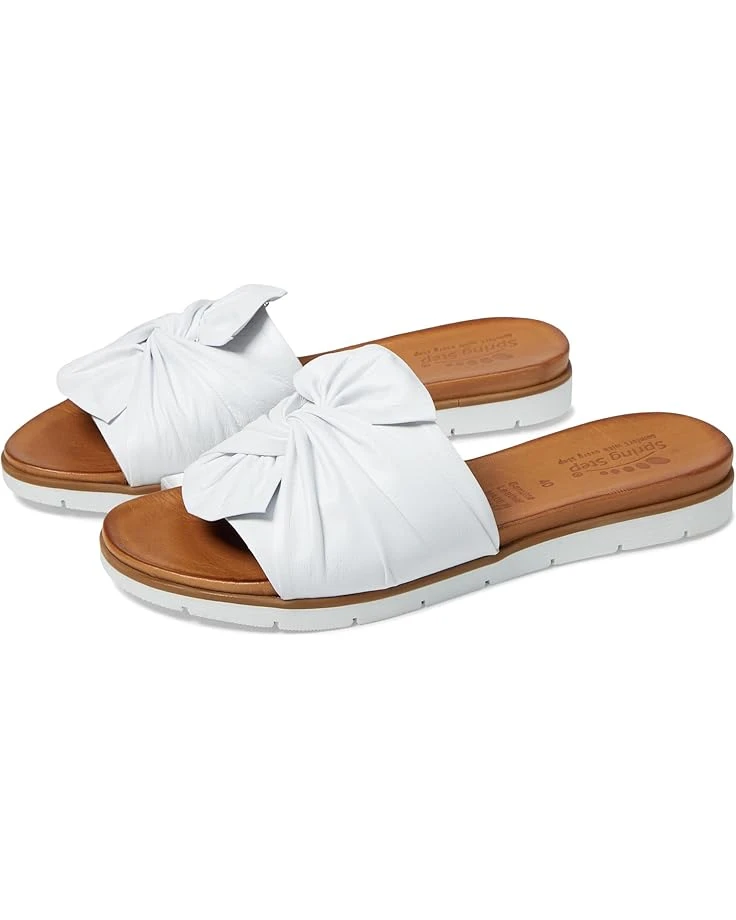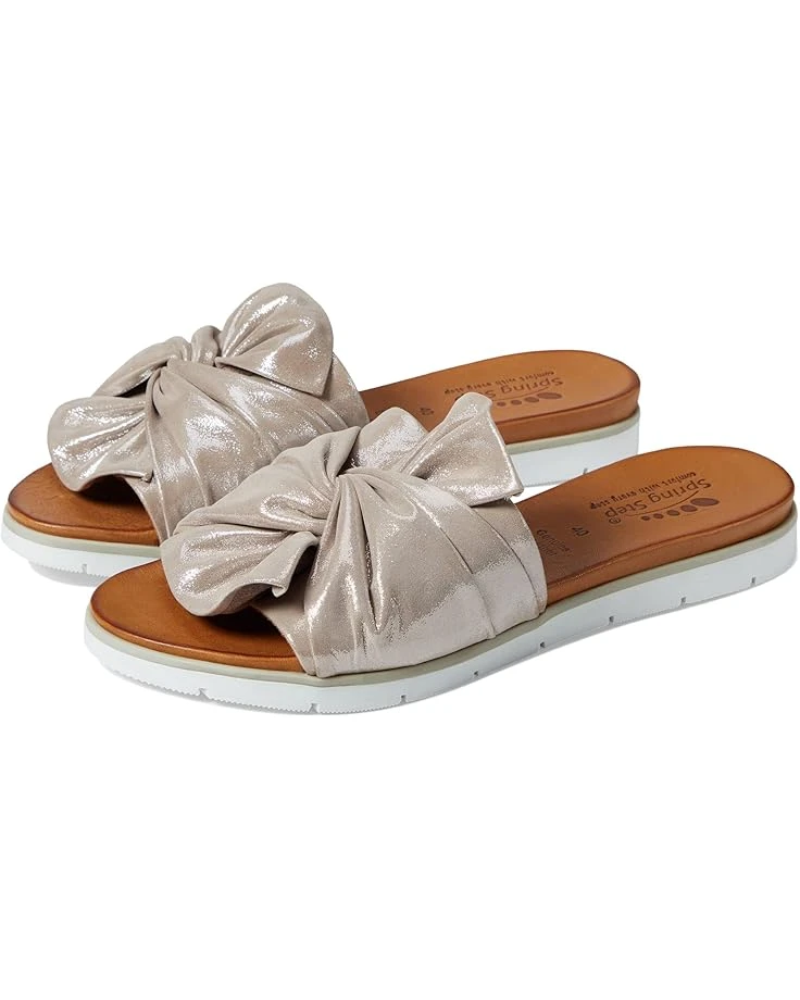 - Every season’s go-to sandal, the Spring Step® Lavona Flat Sandals feature twisted bow detail for a fashionable look in an easy slip-on style with a round, open toe silhouette. Plus, the small V-goring located underneath the bow allows for additional adjustability.