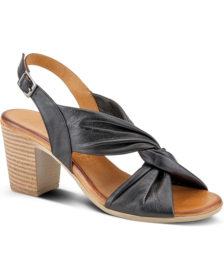 - The Spring Step® Madeleine Heeled Sandals showcase a rich look with the twisted leather straps.