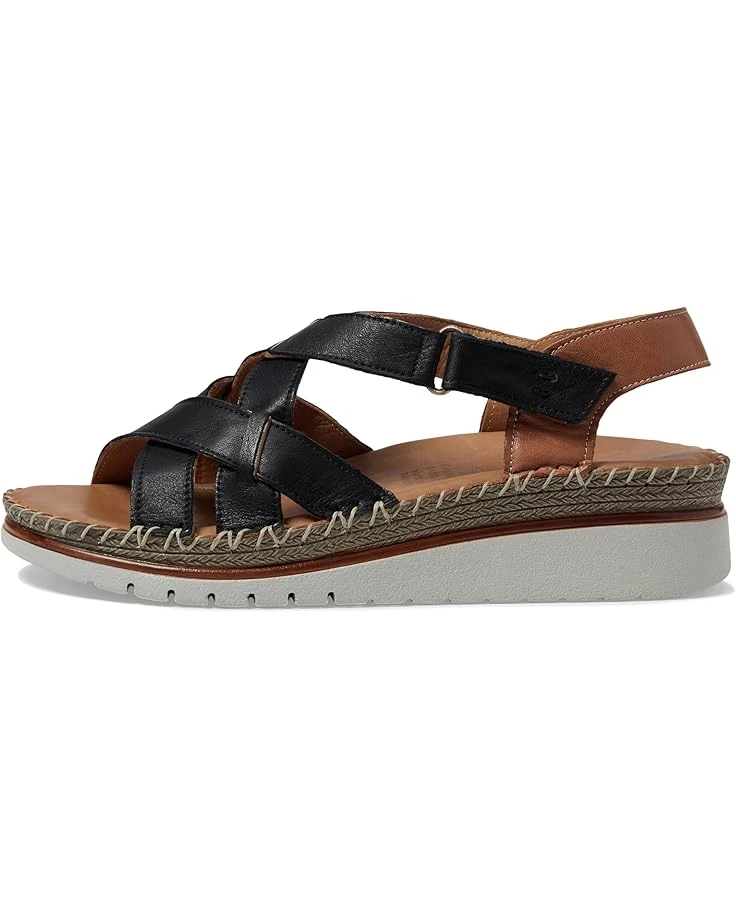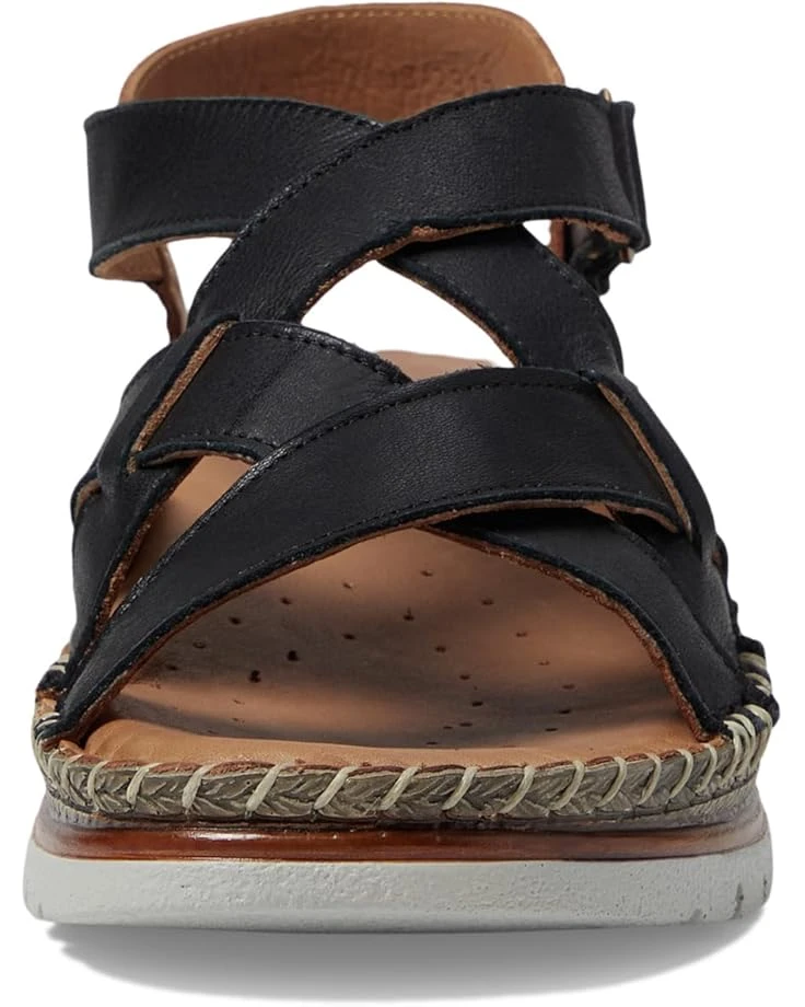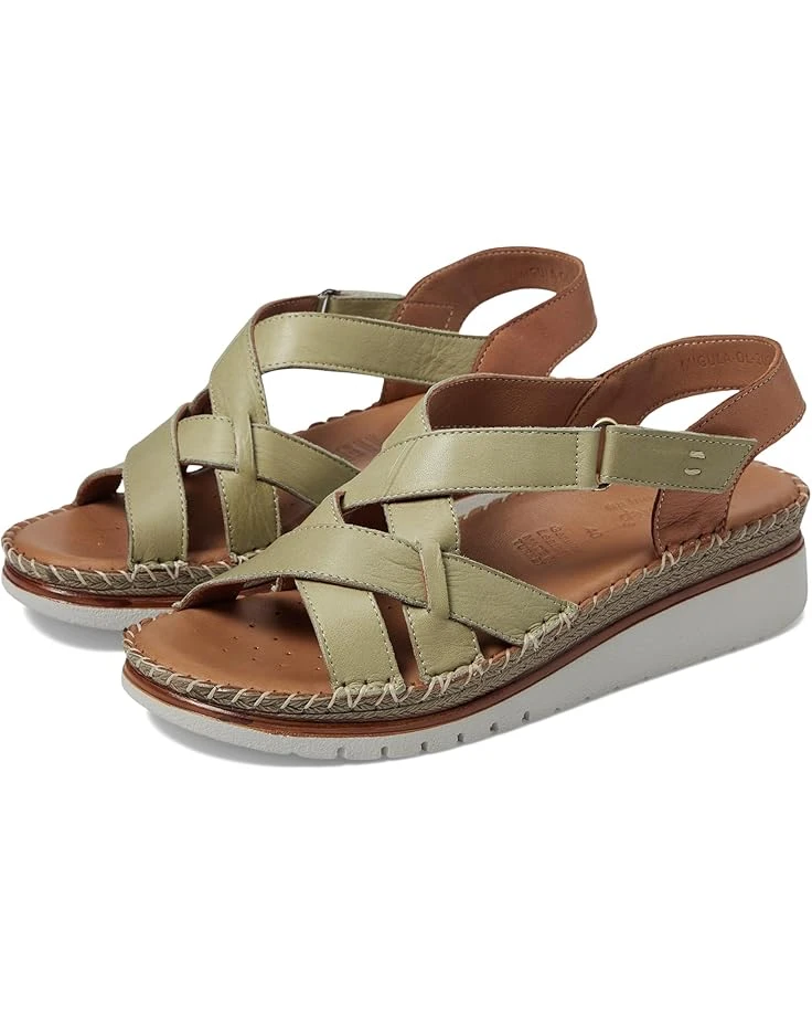 - Look classic and never out of fashion wearing the Spring Step® Migula. Crafted from leather upper, lining and insole, this pair of two-tone sandals features crisscross straps, open round toe, subtle whip stitch detailing for additional appeal, contoured footbed for cushioned support all day long and hook-and-loop closure.