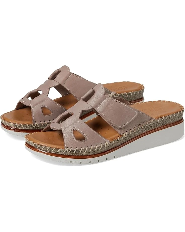 Like many customers returning their Spring Steps, I found the insole to be extremely slippery. I don’t want to spend the time and effort to find out if they eventually become more grippy over time. Even though they come up pretty high on the instep, they felt like they could fly off at any moment just walking around my bedroom. It’s too bad, because the taupe color is almost lavender and really pretty. And they feel quite cushiony and pillowy, which would probably be great for all the walking I’ll do on vacation this summer. Spring Step, please consider switching all your styles to a suede leather insole! I would buy one of each!