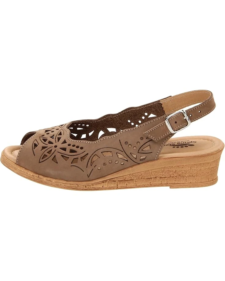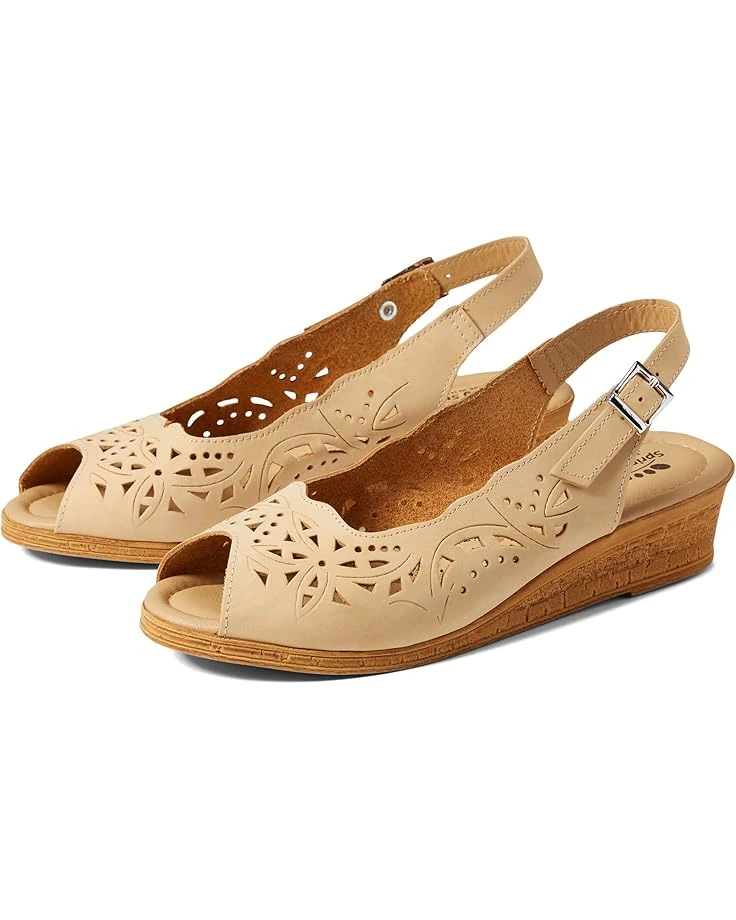 - Indulge in the lasting comfort and style with the Spring Step® Orella slingback wedge. The wedge sandal has a premium leather upper with an intricate laser-cut design throughout for added style and feminine appeal.