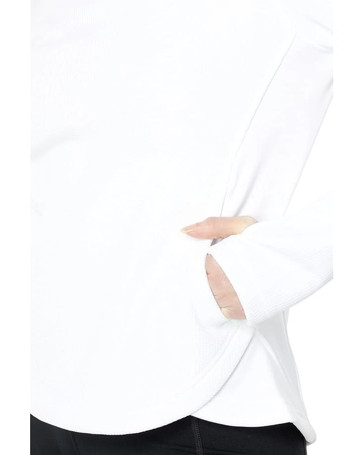 Sadly, this runs very small. I always wear a small and it was too short in the waist and the sleeves. Exchanged for a medium which is still a tad short in the arms (fine in general, but too short when using the thumb holes). Also the black side panels wing out at the bottom, which the photos do not show. (They had to have pinned them down for the photo shoot.) The material is nice and thick and warm, however. Overall, I’m fine with it, but not “in love”. I’m definitely glad I bought it on sale.
