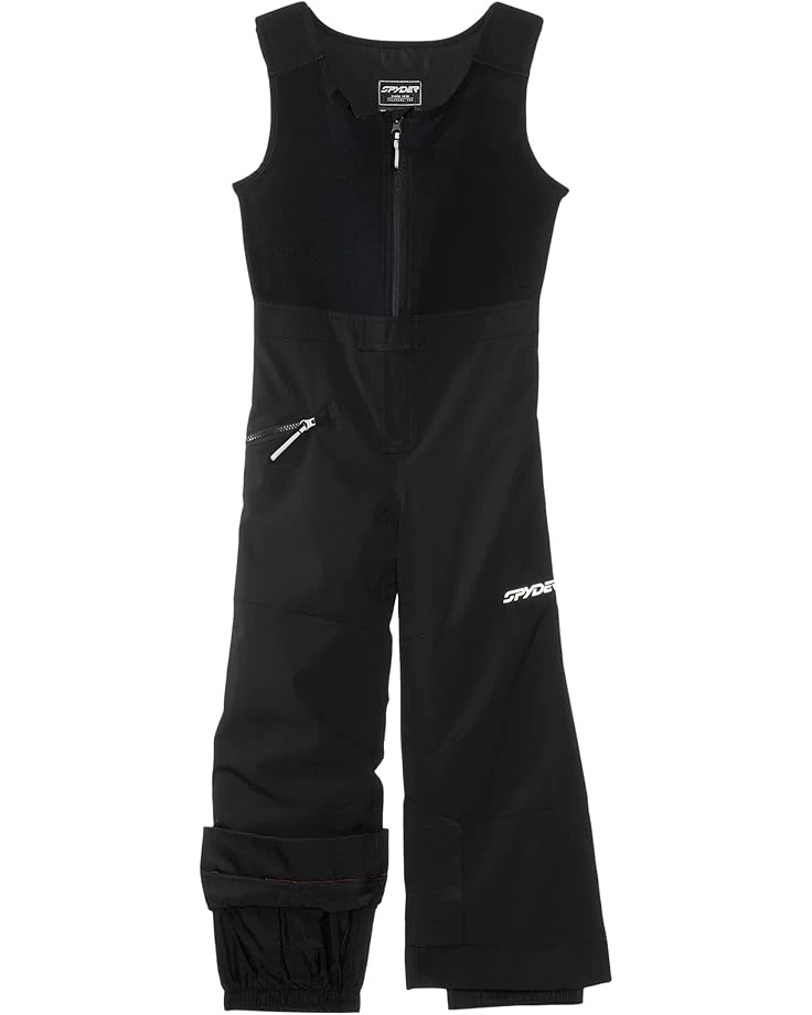 - Let your junior enjoy skiing adventures wearing the Spyder® Kids Expedition Pants. The pants are crafted with a EXO THERMO Insulation (60G), YKKReverse coil center front zipper, and attached stretch fleece vest with adjustable shoulder straps. It features a mid-rise waist and a straight leg style. The YKK Vislon thigh pocket zipper, reinforced scuff cuff around bottom hem, and inner snow gaiters with gripper elastic further enhance comfort. Plus, the hem extends an additional 2″ when stitch is released.