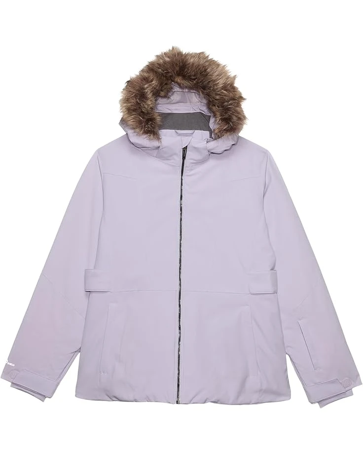 - Built with a removable helmet-compatible hood with an inner hood gaiter, detachable faux fur trim gaiter, and detachable faux fur trim, the Spyder® Kids Lola Jacket is an ideal choice to keep your kid cold-protected. This hooded jacket comes with long sleeves, a zippered front closure, adjustable cuff tabs with gussets, interior stretch cuffs with thumbholes, and a drawcord adjustable hem. The fixed powder skirt of the jacket comes with snaps, gripper elastic, and a data card. Made from stretch recycled polyester weave fabric and EXO THERMO insulation, this zip-up jacket provides durable weather protection.